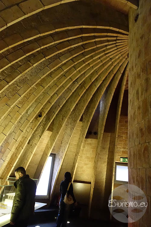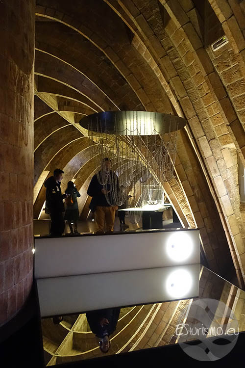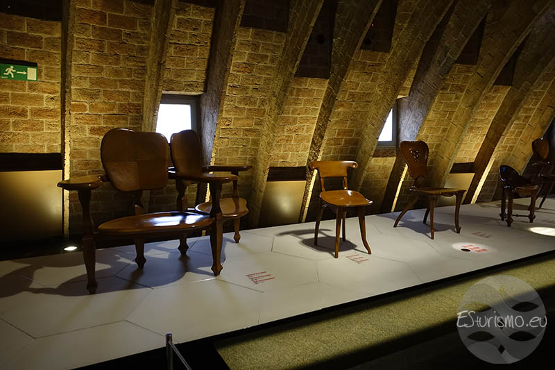 Tras terminar el recorrido por esta vivienda y haber visto no sólo cómo es una casa de lujo recreada con mobiliario y objetos de principios del siglo XX, sino también haber entendido cómo se vivía en un edificio moderno de la burguesía barcelonesa y cómo las soluciones arquitectónicas de Gaudí condicionaban el uso cotidiano de los espacios, ahora toca subir al desván, concebido originalmente como espacio de servicios. Gaudí diseñó este amplio desván sobre la estructura de la última planta, buscando una solución que no incrementara la carga del edificio. Para ello ideó una secuencia de unos 270 arcos de ladrillo, conocidos como arcos de catenaria o “equilibrados”, que sostienen directamente la azotea sin necesidad de apoyos exteriores. Estos arcos, además de ser ligeros y sencillos de ejecutar, se mantienen por su propio equilibrio estructural. Estas formas generan una sensación constante de movimiento, donde las líneas no son rectas, sino que fluyen de manera orgánica y casi viva, dando la sensación de haber sido tallado en el interior de una enorme ballena.