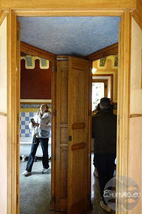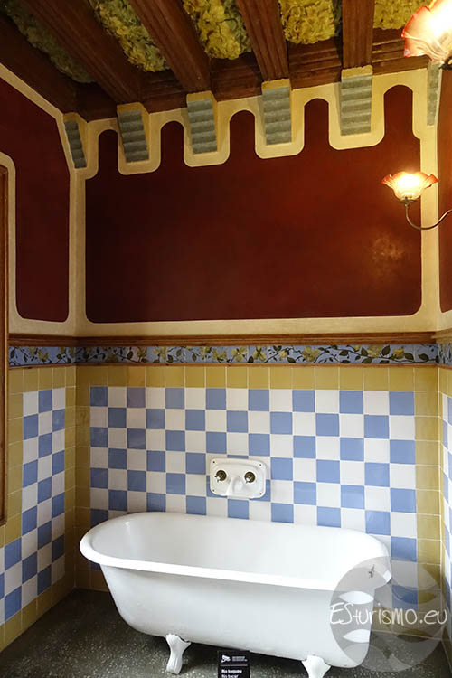 Antes de ir a los baños, merece la pena detenerse en el distribuidor, ya que no es un espacio habitual porque, debido a las dimensiones reducidas de la vivienda, Gaudí prescinde de los pasillos tradicionales y los sustituye por originales distribuidores de forma hexagonal. Se trata de otra demostración de su valentía creativa, donde funcionalidad y estética se combinan de manera brillante.