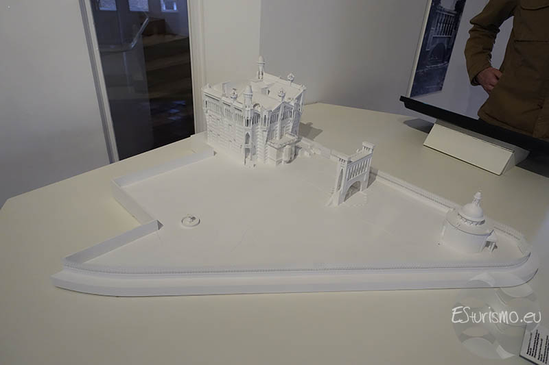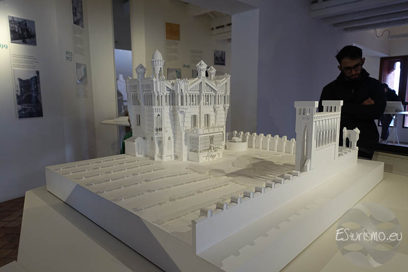 Tras conocer un poco más la personalidad de Gaudí, avanzamos unos pocos metros hasta la zona donde se exponen diferentes maquetas. Entre ellas vemos, en el centro de la sala, una maqueta de mayor tamaño que corresponde con la distribución histórica de la Casa Vicens. Gracias a ella es posible comprender cómo era la casa en su estado original: la organización de los espacios, las proporciones del jardín y la relación del edificio con el terreno. Así, en un inicio el solar rodeaba tres de las fachadas, aunque, años después de concluirse la obra, el Ayuntamiento de Barcelona ordenó ensanchar la calle de acceso, lo que obligó a adosar el muro perimetral a una de las fachadas.