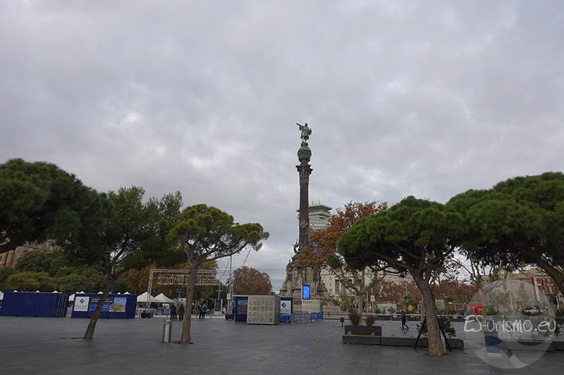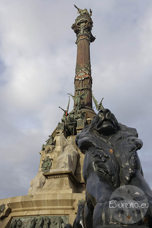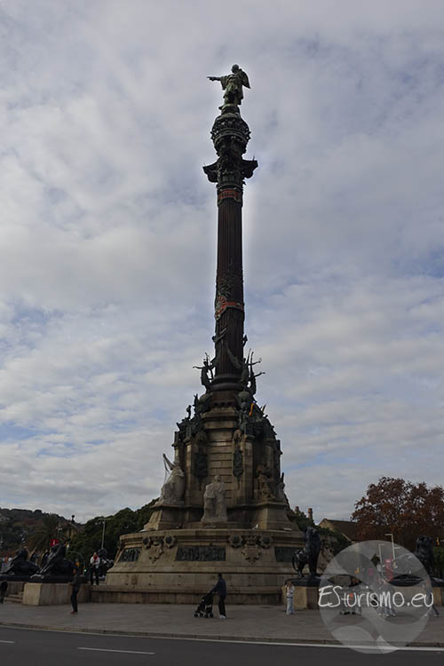 El Monumento a Colón se encuentra en la plaza Portal de la Pau (o del Portal de la Paz, nombre que conmemora el final de la II Guerra Mundial, aunque la mayoría de la gente la conoce simplemente como plaza Colón.), muy cerca de Las Ramblas, el puerto Viejo y del paseo de Colón. Se trata de uno de los símbolos más reconocibles de la ciudad que fue diseñado por el arquitecto Gaietà Buïgas i Monravà en un área recuperada al mar tras el derribo de la antigua muralla de la ciudad, un cambio significativo dentro del ambicioso Plan Cerdà de urbanismo. En un primer momento se pensó que la obra se financiaría gracias a aportaciones privadas, pero finalmente el Ayuntamiento de Barcelona asumió el coste principal. El gobierno de Madrid también colaboró aportando unas 30 toneladas de bronce procedentes de material bélico en desuso que se reutilizó para la construcción del monumento. El traslado de las distintas piezas hasta el lugar de montaje fue todo un acontecimiento para los ciudadanos de la época, ya que se realizó en carros tirados por largas filas de caballos.