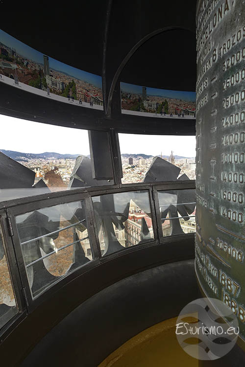 Desde allí, las vistas panorámicas de 360 grados permiten descubrir distintos rincones de la ciudad según hacia dónde se mire. A grosso modo, hacia el norte se distinguen el barrio Gótico con sus edificios históricos, la catedral, la iglesia de Santa María del Mar, Las Ramblas (situadas justo debajo) e incluso, a lo lejos, las cúpulas de la Sagrada Familia. Si se observa hacia el sur, aparecen la montaña de Montjuïc y el conocida como Anillo Olímpico. Mirando al este se alcanzan a ver el Fòrum (reconocible por su distintiva placa fotovoltaica), las torres gemelas que marcan la entrada al puerto Olímpico y hasta el famoso pez dorado diseñado por Frank Gehry. Por el lado oeste, el paisaje se completa con la sierra de Collserola y la emblemática montaña del Tibidabo.