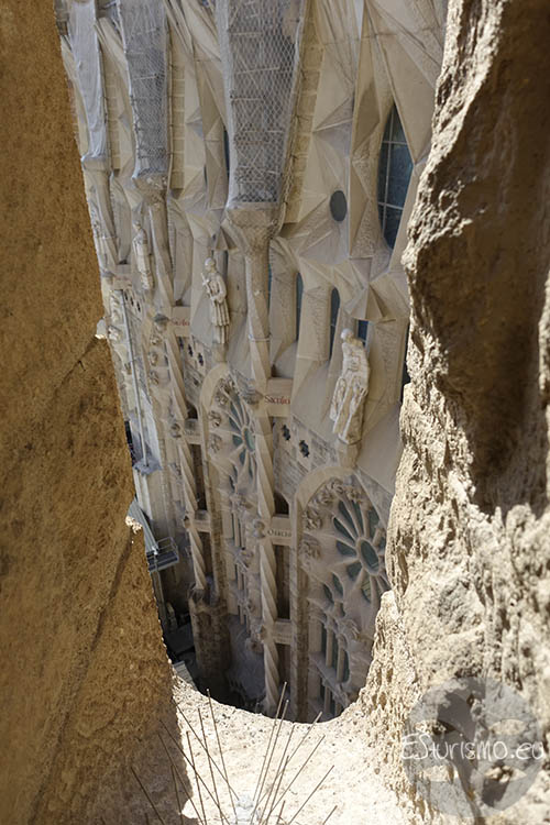 Nosotros elegimos ascender a las torres de la fachada del Nacimiento, ya que desde ellas se pueden ver de cerca las detalladas de algunas de las esculturas situadas en esta parte. La visita a las torres tiene una duración de alrededor de 40 minutos. Los primero es subir hasta lo más alto de la torre dedicada a Judas en un ascensor, desde el cual, a pocos metros se desemboca al puente que la une con la dedicada a Simón y desde donde ya se puede apreciar de cerca detalles arquitectónicos, como las palomas y la cruz del árbol de la Vida que corona la fachada de la Natividad.