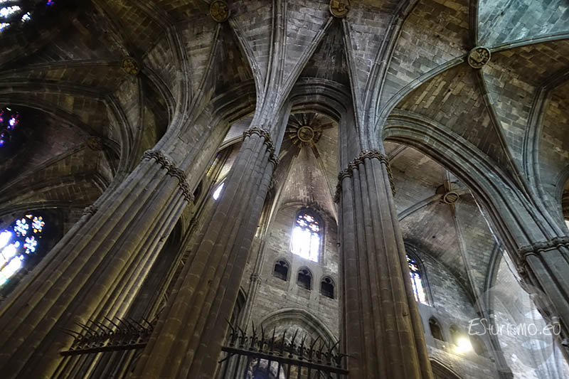 Ponemos rumbo ahora al claustro, para ello atravesamos una puerta construida a finales del siglo XII y perteneciente, por tanto, al conjunto románico. El claustro, uno de los más importantes de España y Cataluña, está compuesto por cuatro galerías que forman una planta trapezoidal irregular ya que estaba condicionada por la presencia de la antigua muralla y la adición de dependencias a su alrededor. Durante siglos, los claustros eran lugares importantes en muchas catedrales (y monasterios), puesto que los canónigos vivían en comunidad en el recinto episcopal, cumpliendo varias funciones como, entre otras, la de distribución las dependencias de la vida comunal (como el refectorio), actos litúrgicos, espacio de oración y reflexión, lugar de enterramiento para los canónigos, etc.…