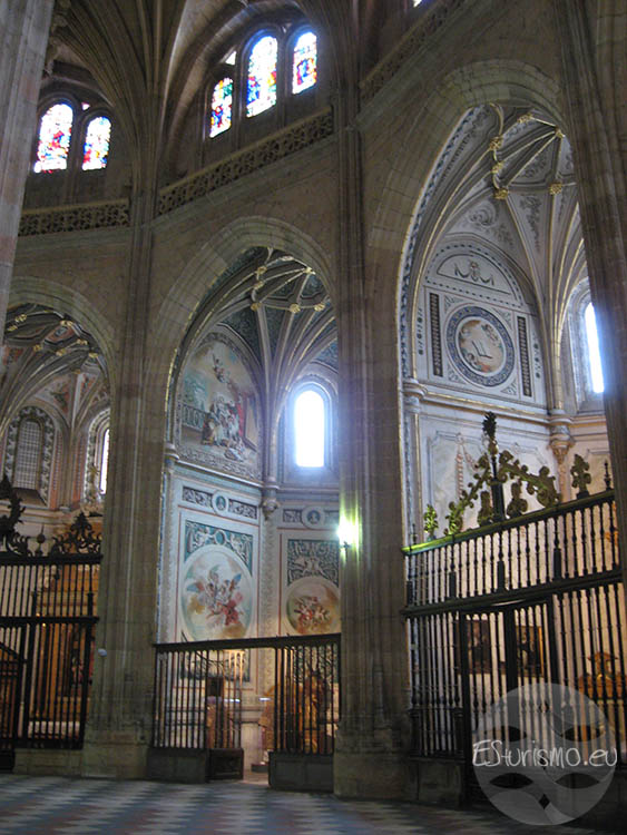 Terminadas las capillas de la derecha, nos aproximamos hasta las de la izquierda, pero antes nos paramos en el trascoro, donde se custodian los restos de San Frutos, patrón de Segovia. El retablo central es obra de Humbert Dumandre de 1758 y los laterales de Ventura Rodríguez y Juan de la Torre.