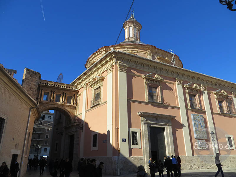 En la construcción de la capilla intervinieron José Artigues y José Montero, bajo la dirección de Diego Martínez. Entre 1652 y 1660 se realizaron las fachadas exteriores, comenzándose la construcción de la bóveda elíptica a finales de 1660. En 1659 se acordó unir la Catedral y la basílica mediante el uso de un paso elevado, debajo del cual se encontraba el acceso principal (llamada Puerta de Bronce) y cuyas hojas actuales además de poseer mirillas por donde ver a la imagen cuando la iglesia está cerrada, poseen bonitos altorrelieves donde se narra diversos hechos de la historia de la Virgen, realizados en el siglo XX por el escultor Octavio Vicent.