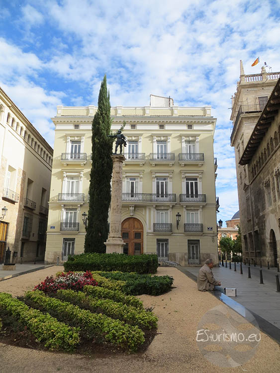 Y ya que estamos en esa plaza, podemos ver que la rodean interesantes edificios, como la Casa de los Vallier, edificio semipalaciego de carácter residencial-burgués cuyas obras se iniciaron en 1883. A principios del siglo XX fue reformando, momento en que se le dio la configuración que vemos actualmente. Fue la sede de la Casa Norteamericana hasta que fue adquirida por la Diputación de Valencia. Justo enfrente se sitúa un pedestal de piedra del que emerge una columna dórica (procedente del antiguo Hospital Provincial) coronada por una escultura de bronce que representa al conquistador Francisco Pizarro, obra del escultor Pío Mollar del año 1969.