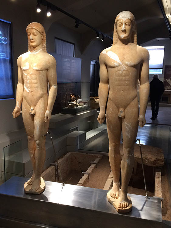La exposición "Corinto, una colonia romana" incluye una importante cantidad de esculturas y mosaicos interesantes de villas romanas de la Colonia Laus Iulia Corinthiensis, así como numeras piezas, principalmente placas esmaltadas, de la era bizantina de la ciudad. De esta sección nos llama poderosamente la atención dos estatuas colosales que representan a frigios cautivos, datados en el siglo II y que originalmente se encontraba en la “fachada de los Prisioneros” de la Basílica norte.