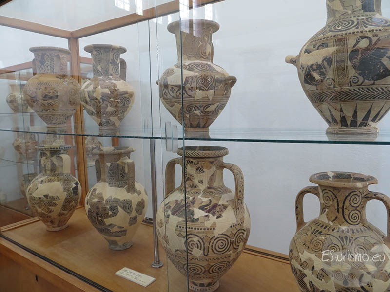 Vasos geométricos de Naxos de la segunda mitad del siglo VIII a.C.; ánforas en estilo orientalizado temprano de Naxos, datadas en el primer cuarto del siglo VII a.C.; y otros vasos con decoración orientalizada procedentes de Sifnos y datados en la primera mitad del siglo VI a.C.