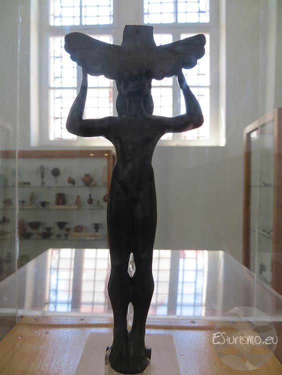 En varias vitrinas se exponen multitud de objetos encontrados en las tumbas de Rínia de los antiguos habitantes de Delos. Entre ellos vemos diferentes figuras, collares, pendientes, pequeñas esculturas, joyas, etc... Al lado vemos los objetos encontrados en la tumba A que pertenecía a un escultor.