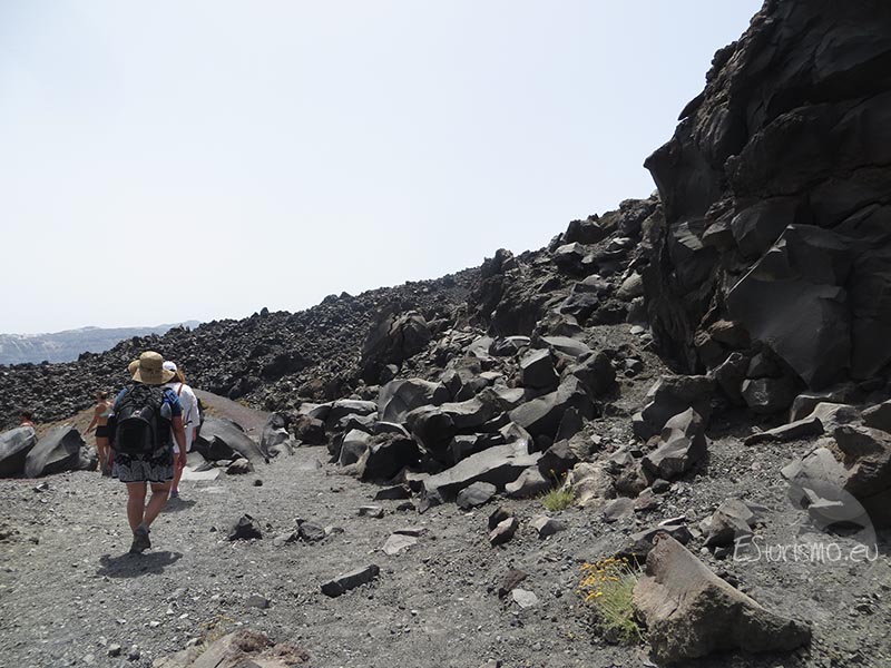 Llegados a este punto nos disponemos a descender del volcán en dirección al muelle donde está atracado nuestro barco para dirigirnos a la segunda parte de nuestra excursión: tomar un baño en las aguas sulfurosas de Paliá kameni. Vamos bordeando las costas del norte de Nea Kameni, oportunidad para fijarnos mejor en ellas.