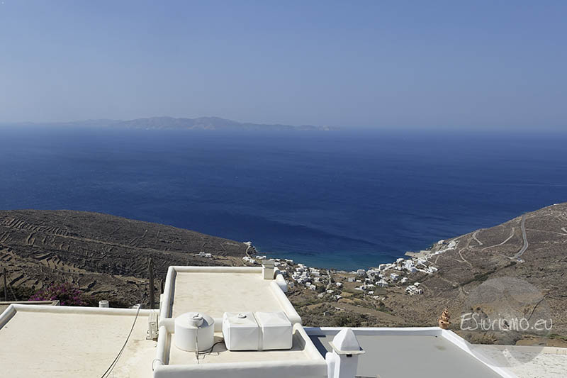 Isternia o Ysternia se encuentra a unos 20 kilómetros de la Chora de Tinos hacia el noroeste. Es uno de los pueblos más grandes de la isla, construyéndose en forma de anfiteatro en la ladera del monte Meroviglia, a 300 metros sobre el nivel del mar, por lo que las vistas hacia el mar Egeo y la vecina isla de Syros son bellísimas. Mucho se ha especulado sobre el origen de su nombre, unos dicen que la ortografía correcta es la de Isternia, puesto que deriva de la palabra latina “cisterna” porque en el pasado tenía muchos aljibes a su alrededor, otros sin embargos aseguran que la acertada es Ysternia, ya que hace referencia al lugar más alejado, la última parada de la carretera. Sea como fuere, si bien aquella primera es más utilizada, la segunda ha prevalecido como nombre oficial desde el año 1996. Nosotros vamos a mencionar este pueblo utilizando indistintamente ambas palabras.