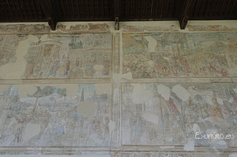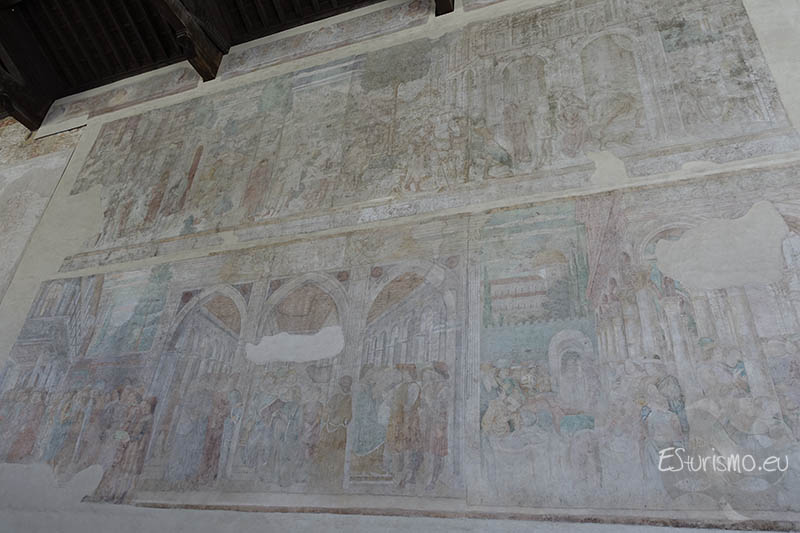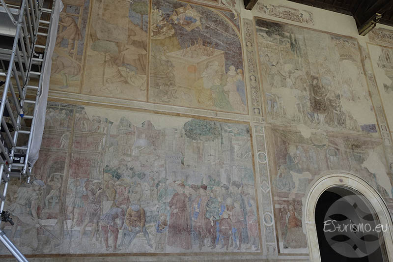 Seguimos con el ciclo pictórico del Antiguo Testamento, ahora vemos las historias bíblicas de Abraham, Isaac y Jacob, aunque muchos de ellos están deteriorados: en la parte baja se narra cómo Abraham, puesto a prueba en el monte Moriah, estuvo a punto de sacrificar a su hijo Isaac, pero un ángel intervino, confirmando así su fe y obediencia. En la parte superior se representa la celebración de la unión de Isaac y Rebeca en un banquete solemne con música y ceremonia. Por su parte, en las Historias de Esaú y Jacob, éste último, con astucia, obtiene primero la primogenitura de su hermano Esaú y luego engaña a su padre Isaac para quedarse con la bendición, provocando la ira y el desconcierto de su hermano. El siguiente fresco, situado en la zona superior, cuenta cómo Jacob sueña con una escalera que une la tierra con el cielo. Después se representa el encuentro con Raquel, su huida de Labán y finalmente lucha con Dios, quien lo bendice y le da un nuevo nombre: Israel. En el tercer fresco vemos el encuentro de Jacob y Esaú, quienes se reconcilian tras mucho tiempo de conflicto. Poco después ocurre el secuestro de Dina, lo que desemboca en una venganza sangrienta contra los raptores, destacando la representación de los guerreros y los retratos de sus coetáneos.