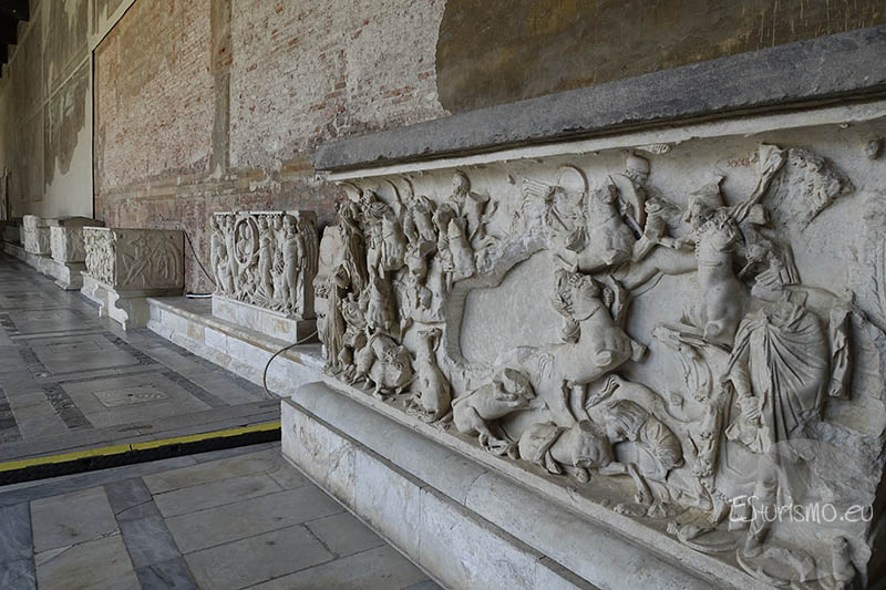 Cada ejemplar posee rasgos singulares: por ejemplo, el sarcófago de la Caza del Jabalí (siglo IV) o el del Buen Pastor y las Musas (siglo II), situados en el ala sur. Estas obras ejercieron una notable influencia en artistas medievales. De igual manera destacan el sarcófago de Fedra e Hipólito (siglo II), que acogió los restos de Beatriz de Canossa, o el de Las Musas (siglo III), cuya iconografía inspiró a Nicola Pisano en la creación del púlpito del Baptisterio. También destacan piezas de transición, como el sarcófago de Giratto, esculpido por Biduino en el siglo XII, adornado con estrígiles e inscrito con uno de los primeros textos en lengua vulgar, o el del abad Benedicto (1443), realizado por Andrea di Francesco Guardi, con guirnaldas y figuras de tradición clásica (ambos conservados en el ala sur).