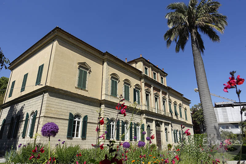 Ya hemos terminado las visitas a los invernaderos, por lo que ahora desembocamos en la Piazzale Arcangeli, la plaza central que se encuentra decorada con flores y palmeras (Jubaea chilensis) plantadas aquí a finales del siglo XIX, aunque una de ellas fue reemplazada en fechas reciente tras haber sufrido el ataque del picudo rojo (Rhynchophorus ferrugineus). Pero el elemento que quizás más llame la atención es el edificio del Herbario y la sala de jardineros. El Herbario (Herbarium Horti Botanici Pisani) es un depósito científico de primer orden, con aproximadamente unos 350.000 ejemplares de plantas secas, colección esencial para investigadores y con acceso por consulta, aunque también existe un “erbario digital” consultable.