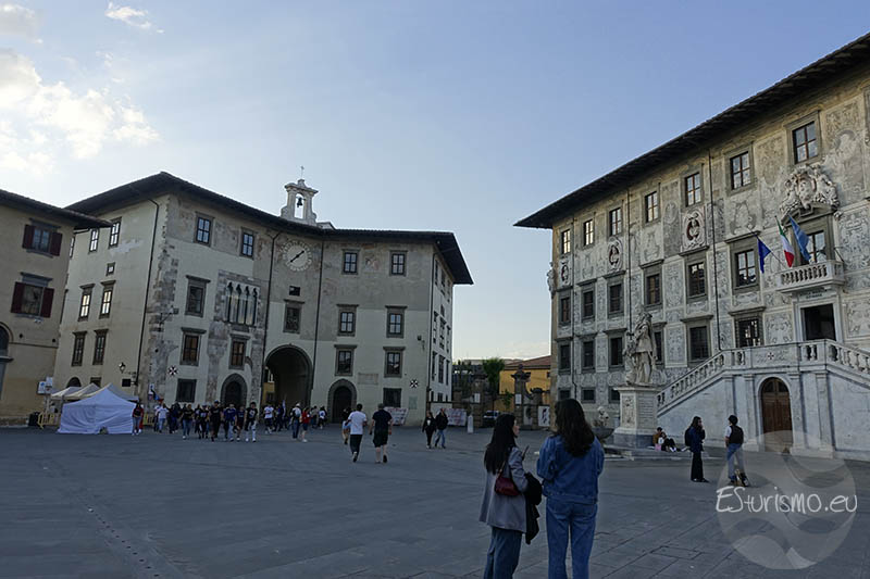 En 1254, uniendo construcciones preexistentes, se construyó el palacio del Pueblo y de los Ancianos, hoy palacio de la Carovana. Ya en el siglo XIV se emprendieron expropiaciones y demoliciones con el propósito de abrir una gran plaza que se denominó Platea Pisani Populi, en la que también se realizaban las ejecuciones públicas. Sin embargo, la plaza que vemos hoy es el resultado de una amplia intervención de reordenación urbana impulsada por Cosme I de Médici en el año 1558. Para ello, encargó el proyecto a Giorgio Vasari, quien reorganizó los edificios que daban a la plaza, muchos de los cuales se encontraban, según sus propias palabras, “en confusión y desorden”, fusionando y regularizando antiguas construcciones medievales.