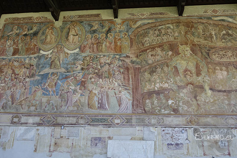 En cuanto al Camposanto, decir que nos ha gustado mucho los frescos recuperados tras el desastre de la II Guerra Mundial. No hay que olvidar que aquí los frescos ocupan más superficie que los de la Capilla Sixtina, aunque por desgracia algunos no hayan sobrevivido a aquellos fatídicos bombardeos. Los muros del Camposanto estuvieron decorados con una enorme cantidad de frescos (se calcula que superaban los 2.600 m²), lo que lo sitúa entre los conjuntos de pintura mural medieval y renacentista más grandes de Italia. Otro de los tesoros de este monumento son las sinopias recuperadas durante las obras de restauración de aquellas pinturas. Las sinopias son los dibujos preparatorios que se hacían como guía antes de realizar la obra definitiva. Por ello es buena idea visitar el Museo delle Sinopie para comprobar cómo algunas de ellas difieren con el diseño definitivo, incluso algunas cuentan con anotaciones.