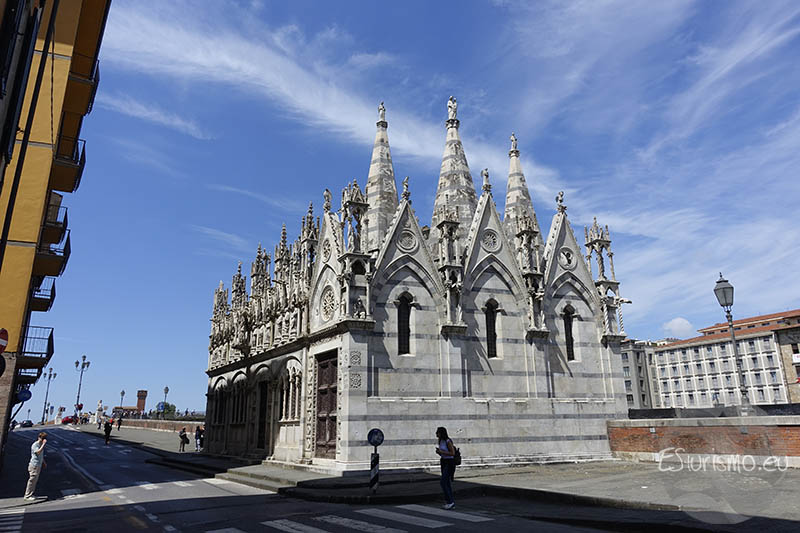 También nos ha encantado, en la Piazza Martiri della Libertà, la iglesia de santa Catalina de Alejandría, por su decoración, tanto interior como exterior, y por su distribución en una sola nave que le da cierto aire de grandeza. Capítulo aparte merecen los lungarnos de Pisa, fascinantes avenidas que bordean el río Arno que está repleta de palacios y edificios muy interesantes, como el Palazzo Vecchio de’ Medici, el palacio Agostini, el Palazzo Lanfreducci, el Palazzo Reale que acoge el museo Nacional, la torre Guelfa, la Chiesa di Santa Maria della Spina, el Palazzo Blu, la Chiesa dil Santo Sepolcro, etc.
