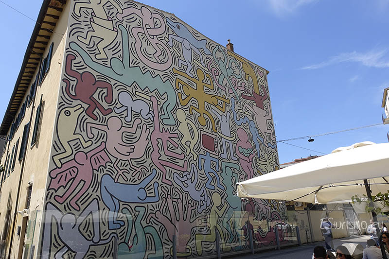 Y ya que hemos roto por completo con la arquitectura de los siglos XIII, XIV, XV, etc., tenemos que señalar otras obras más contemporáneas que nos han encantado, concretamente dos grafitis: el mural que rinde tributo a Galileo Galilei, realizado por el brasileño Eduardo Kobra y, especialmente, el titulado “Tuttomondo” del norteamericano Keith Haring. En este último estuvimos un buen rato admirándolo e intentando descifrar el significado de cada colorida figura y reflexionando sobre el mensaje que el artista quería transmitirnos, justo un año antes de fallecer.