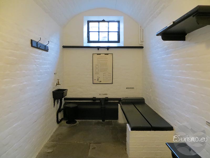 Al entrar nos topamos con unas primeras celdas cuyo aspecto se remonta al año en que la cárcel fue construida, en el año 1842. Como podemos observar, cada calabozo es individual contando con una superficie que sirve de cama, además de un lavabo y un inodoro.