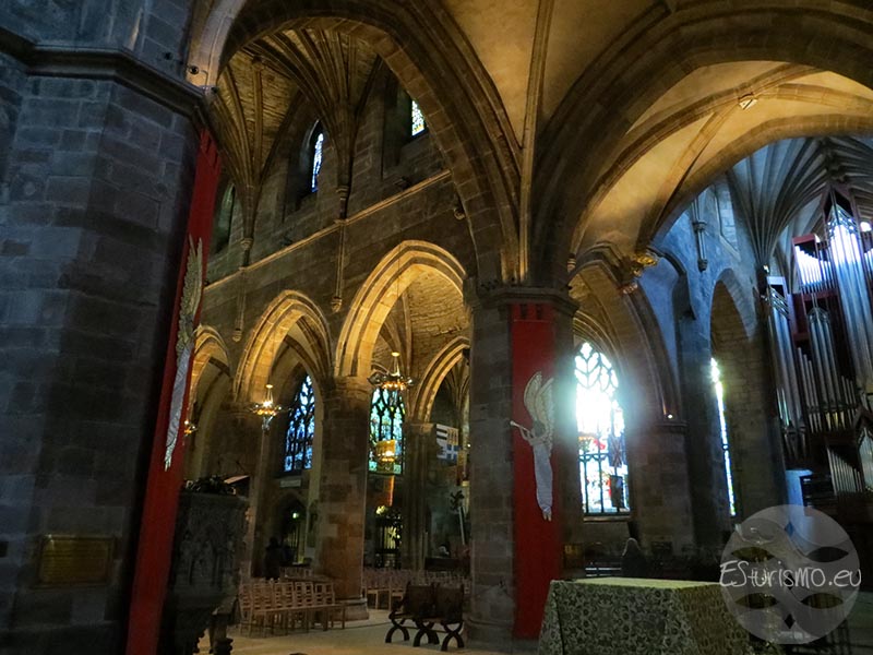 Los orígenes de St Giles hay que buscarlos en el año 1124 cuando fue mandada construir una pequeña iglesia normanda o bien por el rey Alejandro I, quien murió en ese mismo año, o bien por su hermano el rey David I, quien le sucedió. Este primitivo edificio fue destruido en el año 1385. Dos años después, en 1387 comenzarían las obras del nuevo templo, cuya construcción se prolongó hasta mediados del siglo XV. El edificio que vemos en la actualidad corresponde con aquel período, si bien ha sido profundamente reformado durante el siglo XIX.