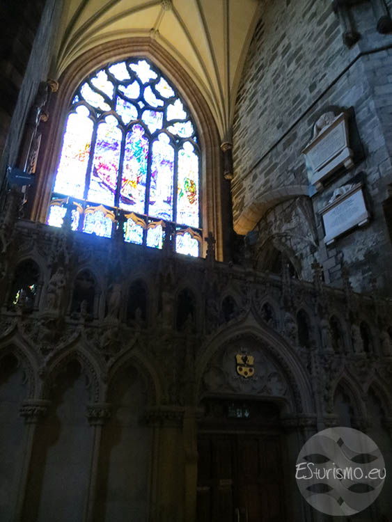 El templo cuenta con varias vidrieras victorianas del siglo XIX, destacando, en el extremo oeste, la diseñando por Edward Burne-Jones y realizada por William Morris. En el muro sur se encuentra otra que representa al líder protestante John Knox dando un sermón en 1570 en el funeral del regente Moray (cuya tumba está señalada por una placa de bronce en el pasillo de la Santa Sangre).